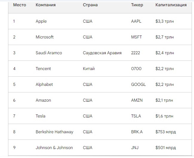 На сегодня мировыми компаниями с наибольшей капитализацией являются: